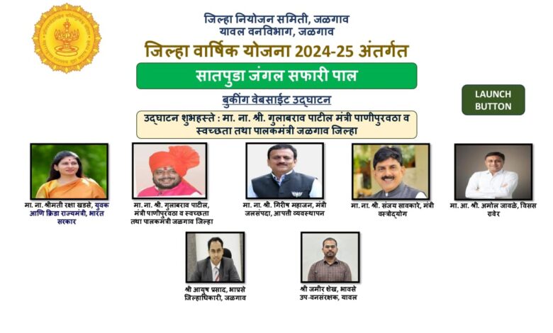 जिल्हा नियोजन समिती, जळगाव यांच्या २०२४/२५ च्या वार्षिक योजनेअंतर्गत सातपुडा जंगल सफारी पाल योजनेच्या बुकिंग वेबसाईटचे उद्घाटन जळगाव जिल्ह्याचे पालकमंत्री तथा पाणीपुरवठा व स्वच्छता मंत्री मा. ना. श्री. गुलाबराव पाटील यांच्या हस्ते करण्यात आले.