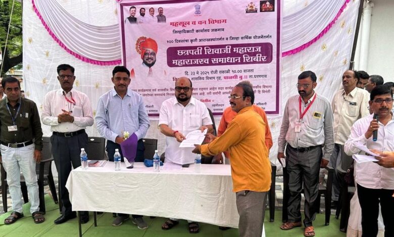 पाळधी (ता. धरणगाव) येथील शासकीय विश्रामगृहात महसूल विभागाच्या वतीने आयोजित शिबिरात विविध शासकीय योजनांचा थेट लाभ लाभार्थ्यांना वितरित करण्यात आला. शिबिरात शेतकरी, महिला, विद्यार्थी, ज्येष्ठ नागरिक, गरजू नागरिक अशा सर्व स्तरातील नागरिकांनी मोठ्या संख्येने सहभाग नोंदविला.