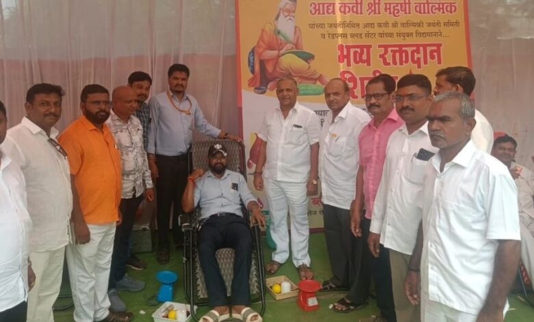 आद्य कवी श्री महर्षी वाल्मिकी जयंती समिती आणि रेडप्लस ब्लड सेंटर यांच्या वतीने भव्य रक्तदान शिबिर आयोजित करण्यात आले.